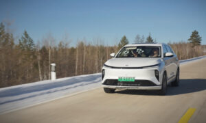 外观方面,可以看到在车头方面仅覆盖一层轻度的伪装贴纸,整体造型设计为风阻让路颇多,类似高铁列车头的模样。另外,整个车头看上去十分的简洁,留有大量的空白区域。前风挡也有着大倾角的设计,并且视野看上去相当不错。车顶上方,仍然提供了激光雷达装置,将具备高阶自动辅助驾驶功能,拥有城市NOA。