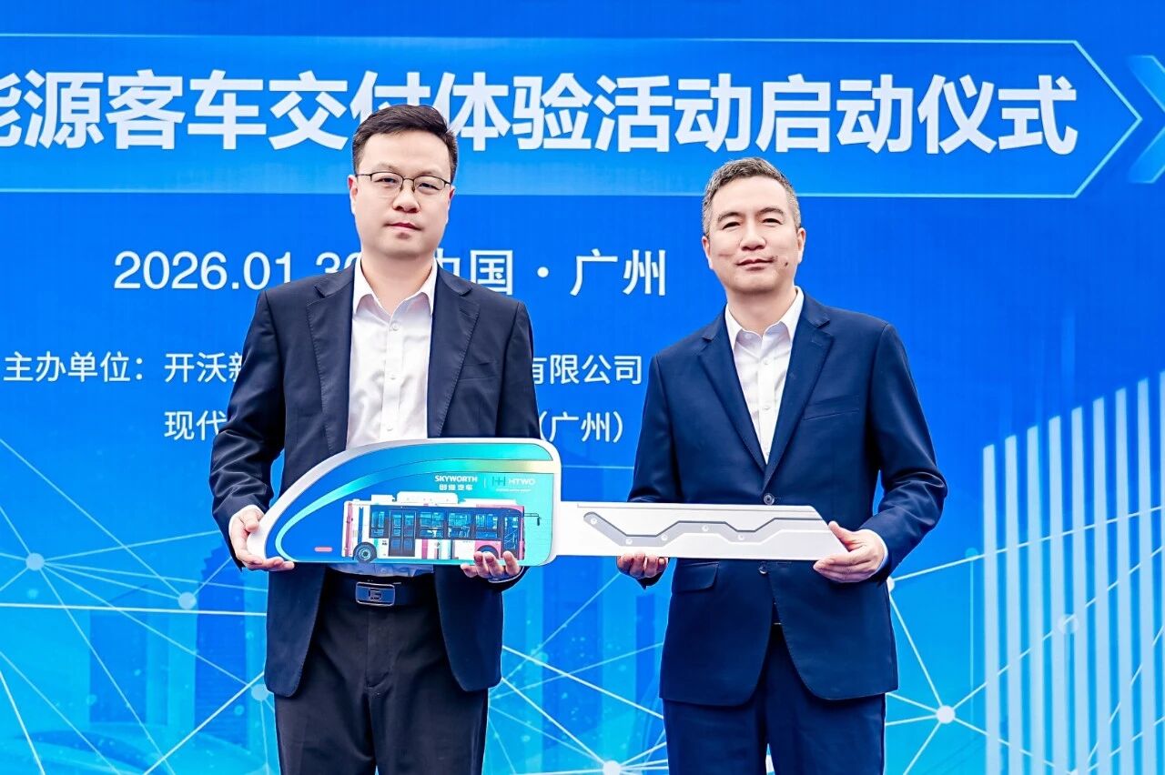 2026年1月30日,由开沃新能源汽车集团股份有限公司(创维汽车)、现代汽车氢燃料电池系统(广州)有限公司(HTWO广州)联合主办的“氢启未来 共赴蓝途”氢能源车辆交付仪式在广州黄埔区光宝广州科技园区隆重举行。本次交付不仅是中国氢能交通领域的一项重大突破,更是广州市积极布局“十五五”氢能战略、加速绿色低碳转型的里程碑事件。