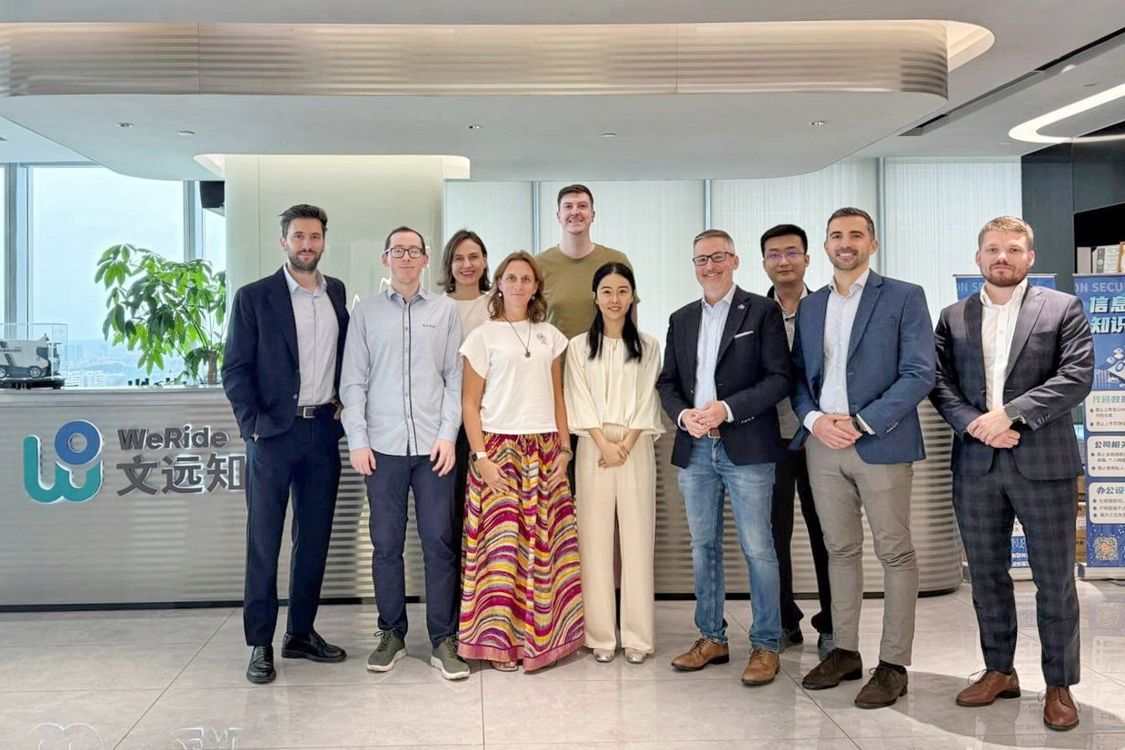 文远知行CFO兼国际负责人李璇,与斯洛伐克交通部、斯洛伐克投资&区域发展与信息化部及DiusAI代表一行在文远知行广州总部合影